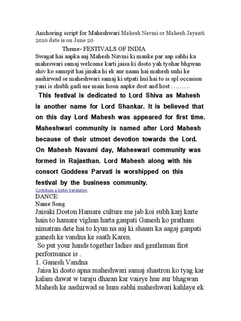 Maheshwari Samaj Anchorin Script